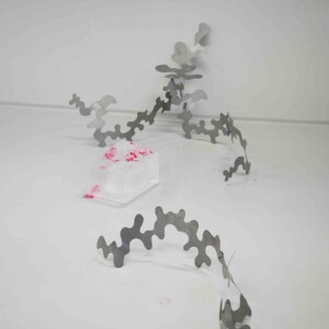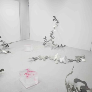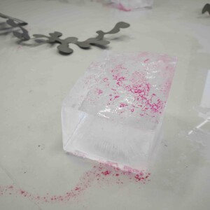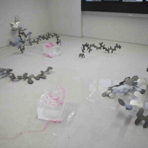 This installation focused on the complexity of fluid energetic movements, observed as the ice slowly melted. Colorful organic oil traced the flow of the water, leaving a mark of its passage. The metal sculptures represented the flow of fluid frozen in time. We often overlook these tiny details of our complex lives, and this project aimed to bring them into the light. It also contrasted the fluid movements with the static metal forms